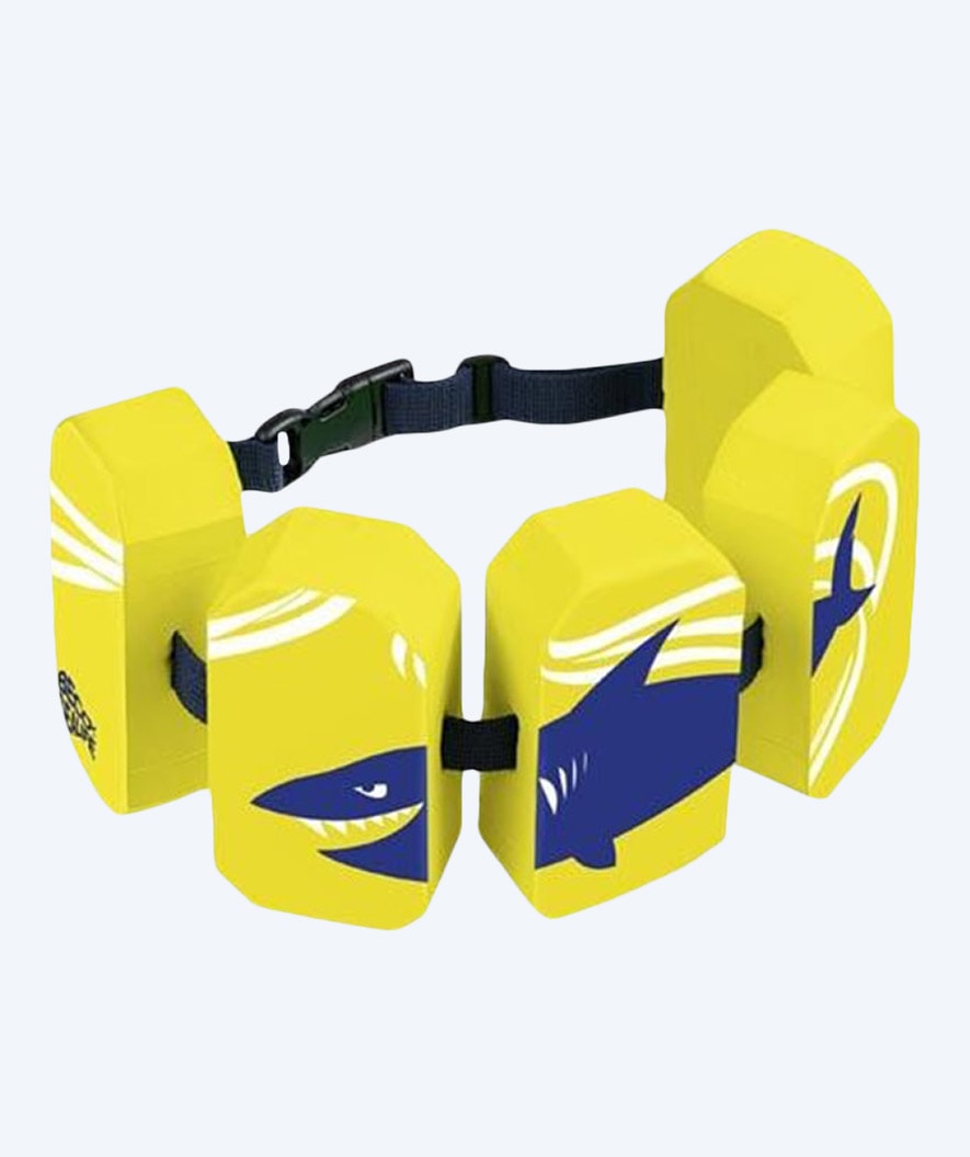 Der Gürtel kommt mit einem niedlichen Fischmotiv auf der Rückseite, das die Kinder lieben, und vorne am Bauch ist eine Schnalle, so dass er sicher am Kind befestigt werden kann. Der Gürtel hat fünf schwimmende Blöcke, die das Kind davor schützen, unter Wasser gezogen zu werden.